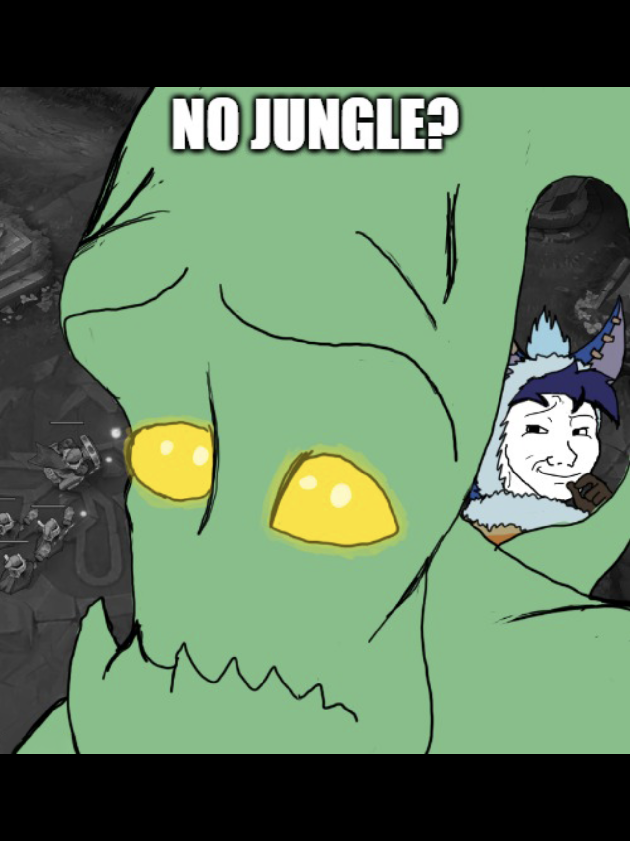 A meme made by a friend after getting JG gapped in a game of L.O.L.